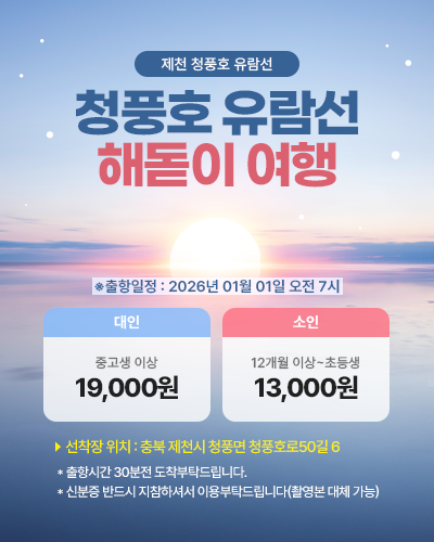 2026년 해돋이기념 청풍호 유람선 선상관광 (2시간)